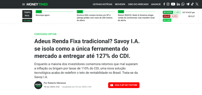 Savoy I.A. analisa, identifica e executa investimentos de alta performance com precisão de 99,1% – Desempenho jamais alcançado por bancos e fundos tradicionais.